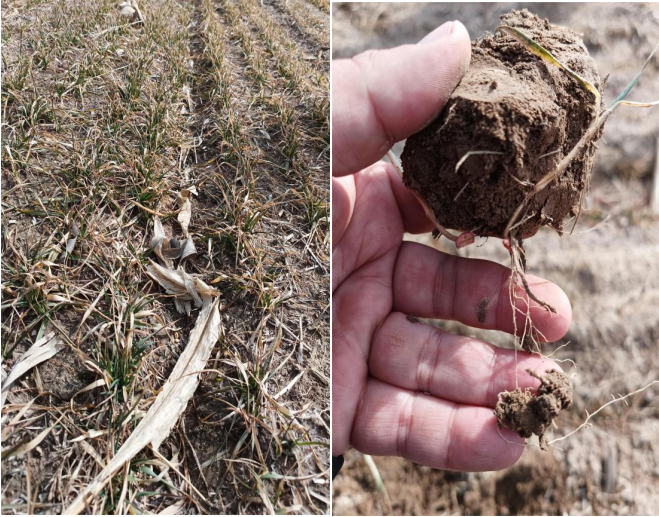 土壤板結(jié)干旱造成的小麥苗弱苗黃