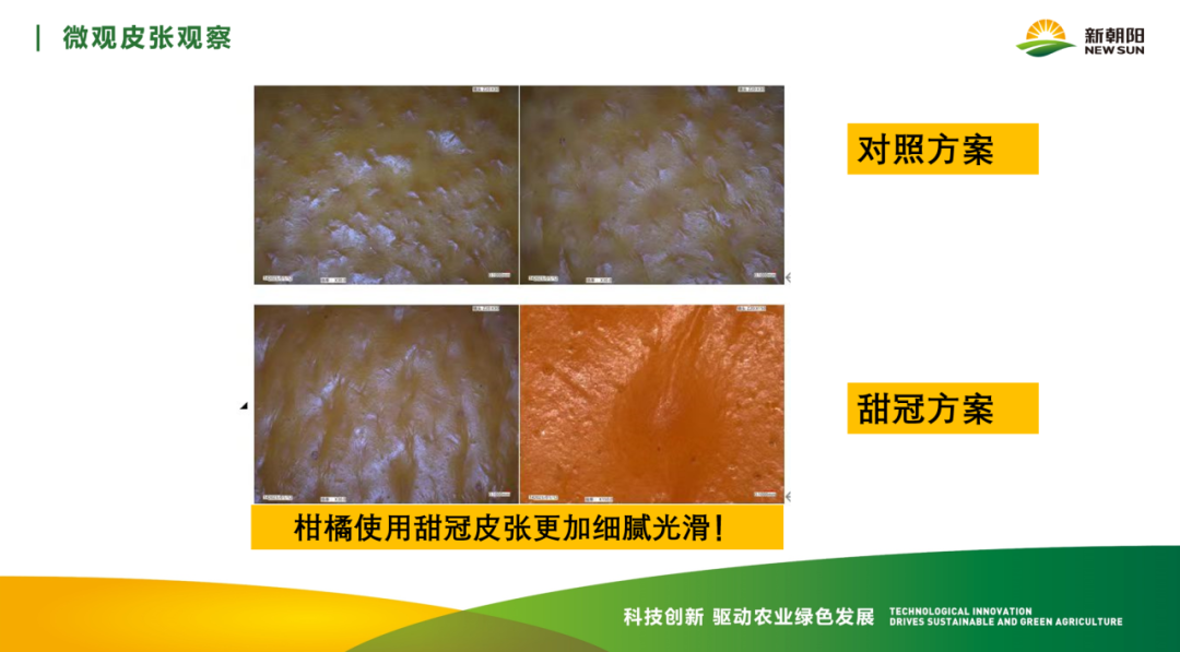 甜冠(冠菌素)適用于各類柑橘品種,如愛媛、金秋砂糖橘、砂糖橘、冰糖橙、金桔、沃柑、耙耙柑、不知火等。促進果實轉色、顏色紅潤,表皮靚麗,提升干物質積累,如提升糖度、芳香味物質積累,提高果實品質,提前上市,提升抗逆性,延長果實留樹保鮮和果實貨架期,減少流通環(huán)節(jié)損耗。